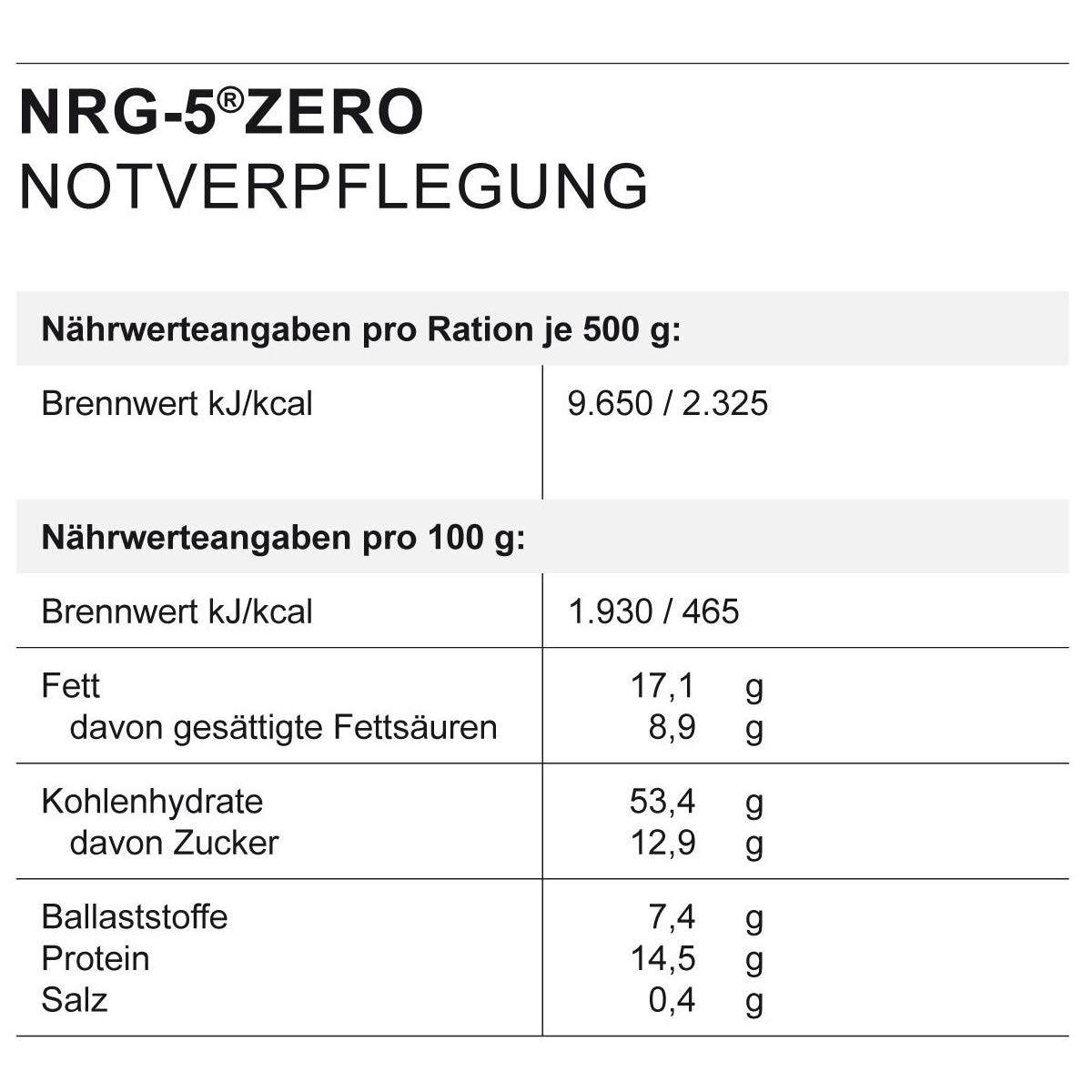 NRG-5 ZERO - NOTVORRAT - GLUTENFREI | 500 Gramm Einheit | Notverpflegung Emergency Food - 15 Jahre MHD