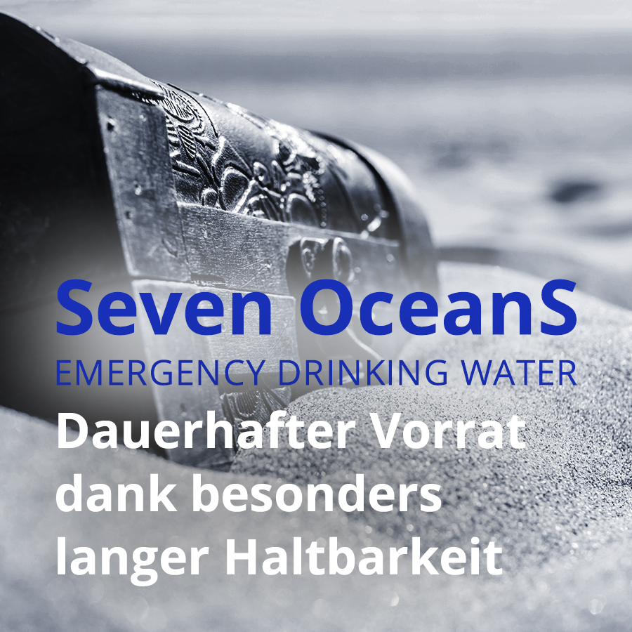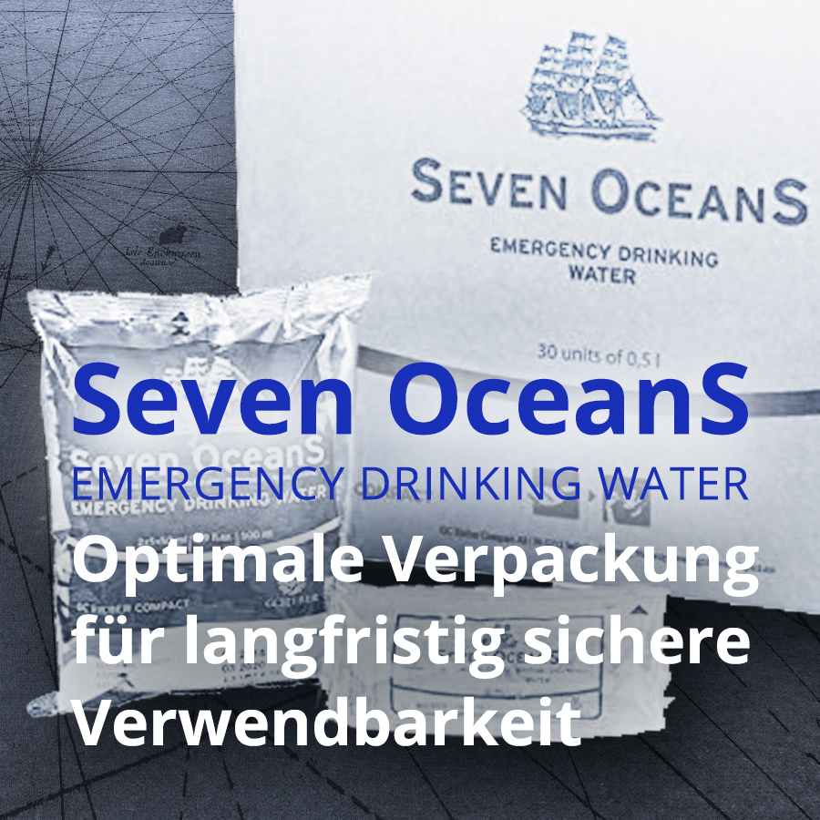 Dabei liegt es nahe, sich mit den bestmöglichen Komponenten zu versorgen. Hierzu gehört definitiv das aus der internationalen See- und Luftfahrt bekannte Seven OceanS Notfall-Trinkwasser: